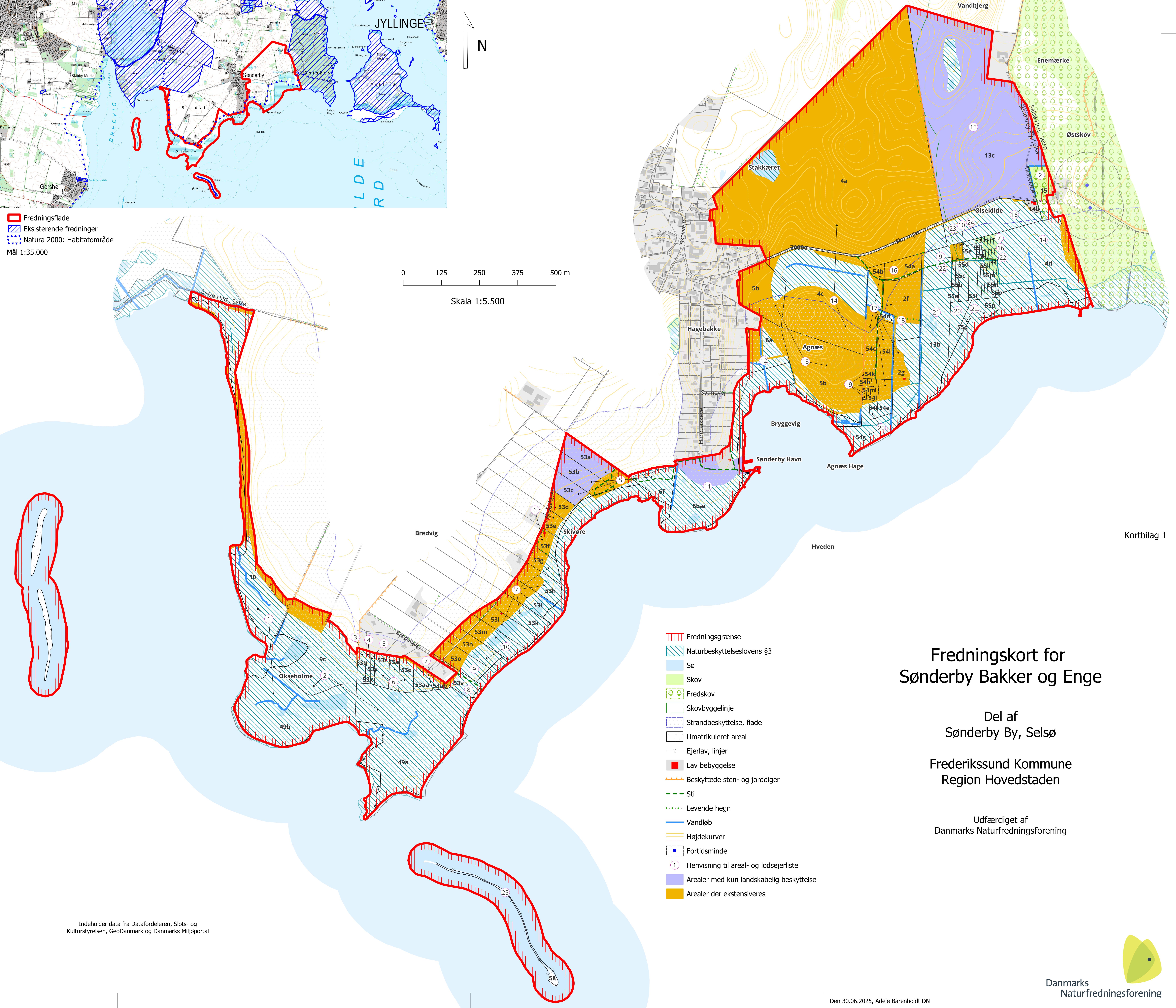 Fredningskort for Sønderby bakker og enge i Frederikssund